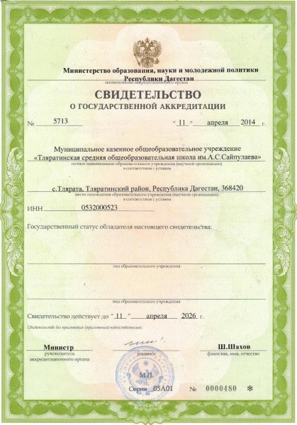 | Полное наименование образовательной организации* | Муниципальное казенное общеобразовательное учреждение "Тляратинская СОШ" |